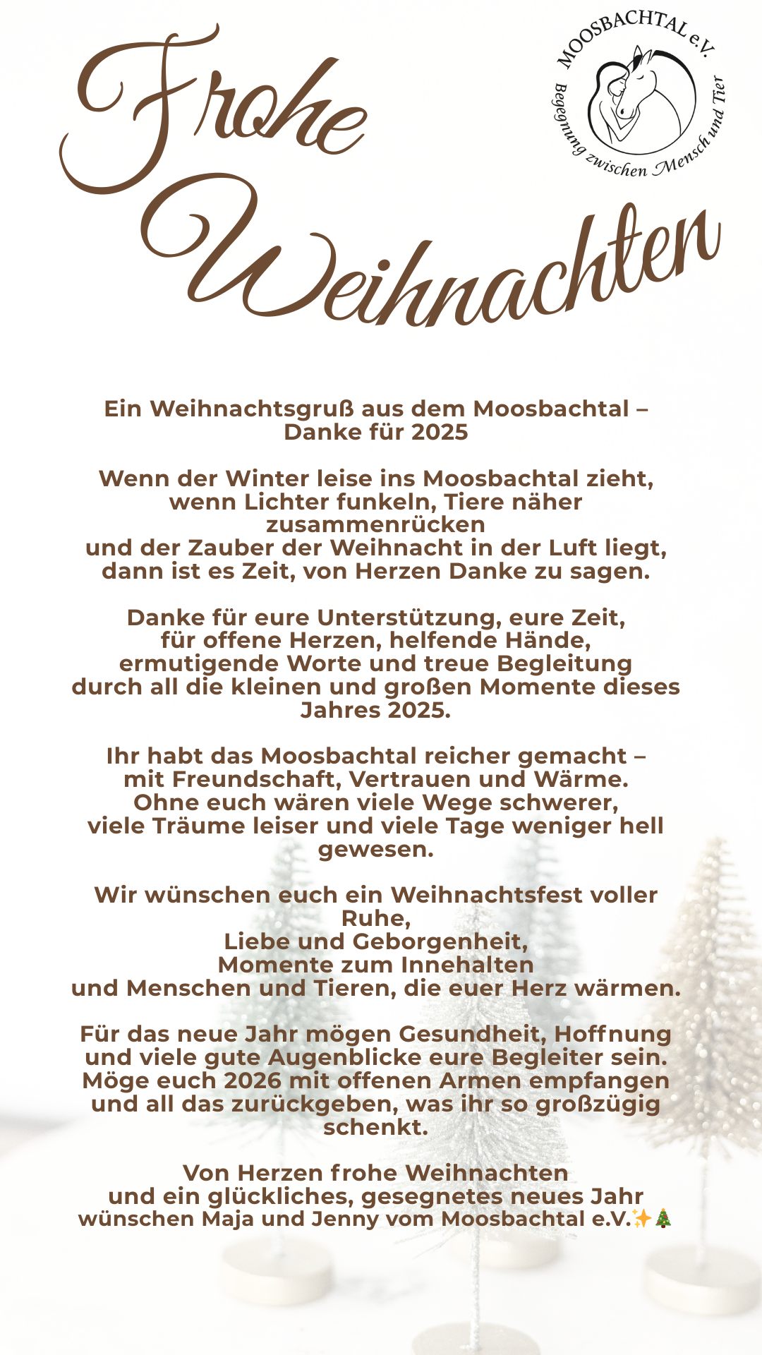 - Ein großes Dankeschön an alle Spenderinnen und Spender, die mit ihren Käufen und Geschenken dafür gesorgt haben, dass unsere Tiere eine wundervolle Weihnachtszeit erleben durften.