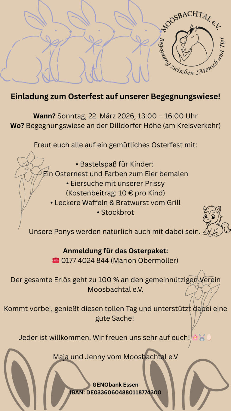 Das bedeutet: Jede Aktion der Streetbunny Crew unterstützt direkt unseren Verein und unsere Arbeit für die Ponys und Pferde im Moosbachtal e.V. 💚